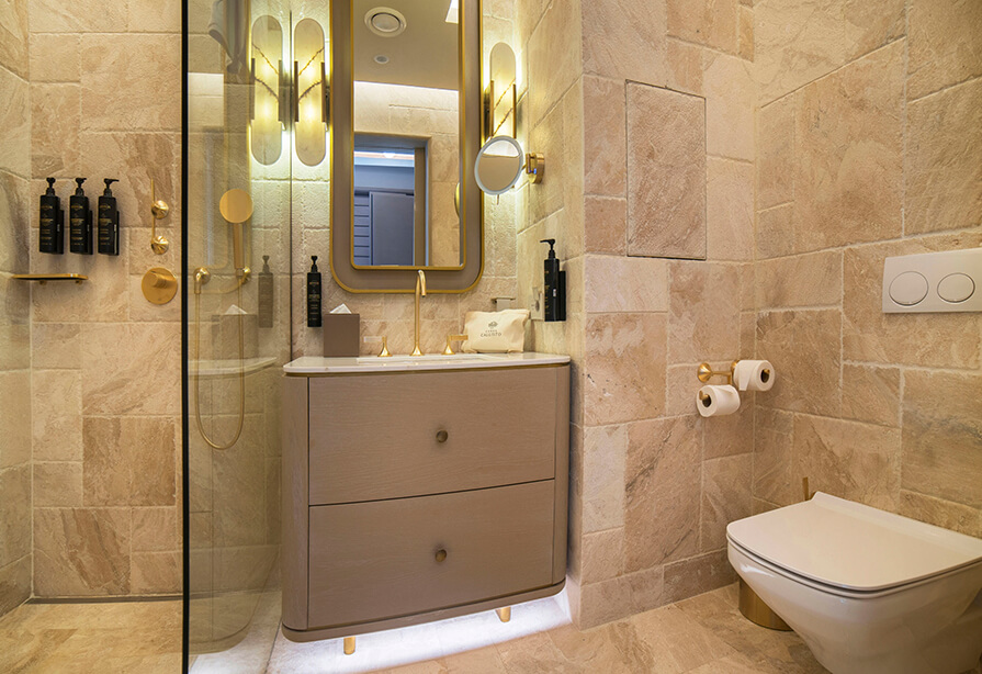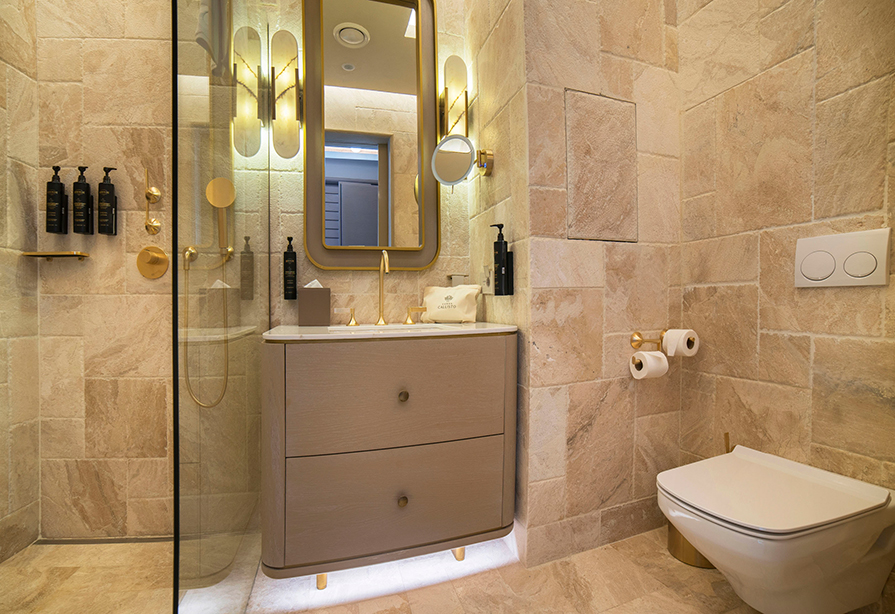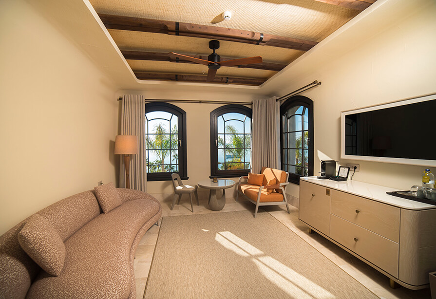 Inspired by nature, our suites offer a spacious 58 m² living area featuring a separate bedroom and living room. Overlooking the enchanting sea view of Cunda Island, guests enjoy a serene and delightful accommodation experience.