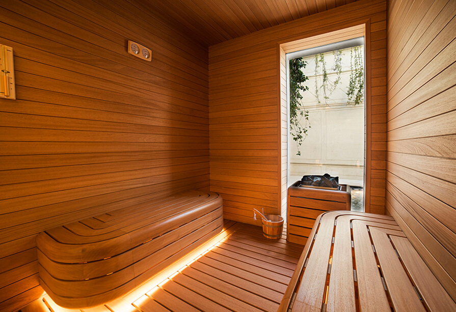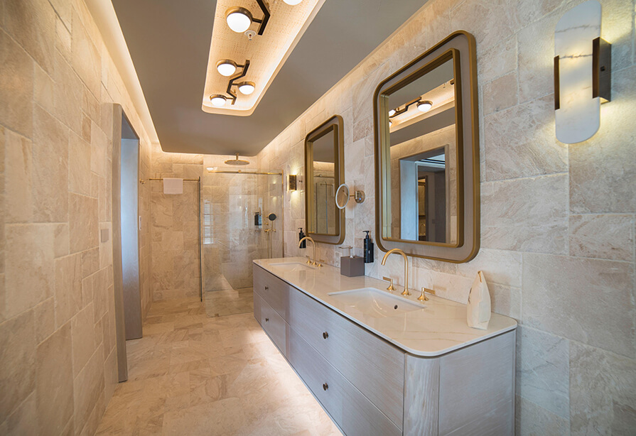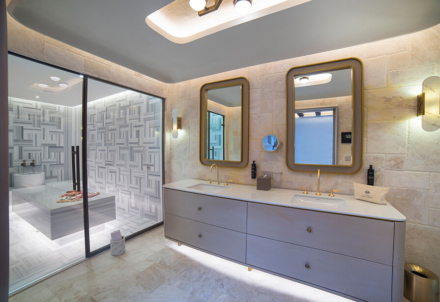 The suites, with a serene 60 m² living area and a 25 m² garden terrace, redefine comfort with exclusive amenities and SPA services such as a Turkish bath, sauna, and a Jacuzzi on the garden terrace.