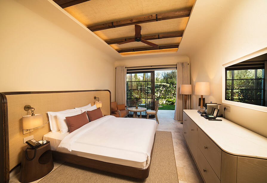 Featuring a private 8 m² garden terrace and a bright 27 m² interior, these rooms offer an inviting and serene living space. In addition to exceptional services, guests are welcomed to indulge in the shimmering sky above and the pure beauty of Cunda Island, enhanced by the privileges of the outdoor terrace.